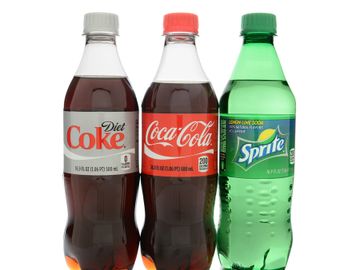 16.9 oz bottles of Coke, Diet Coke, Coke Zero, Sprite, Mountain Dew, Dr. Pepper, Orange Crush, Gold Peak sweet tea, 20 oz. Barq's Rootbeer.
